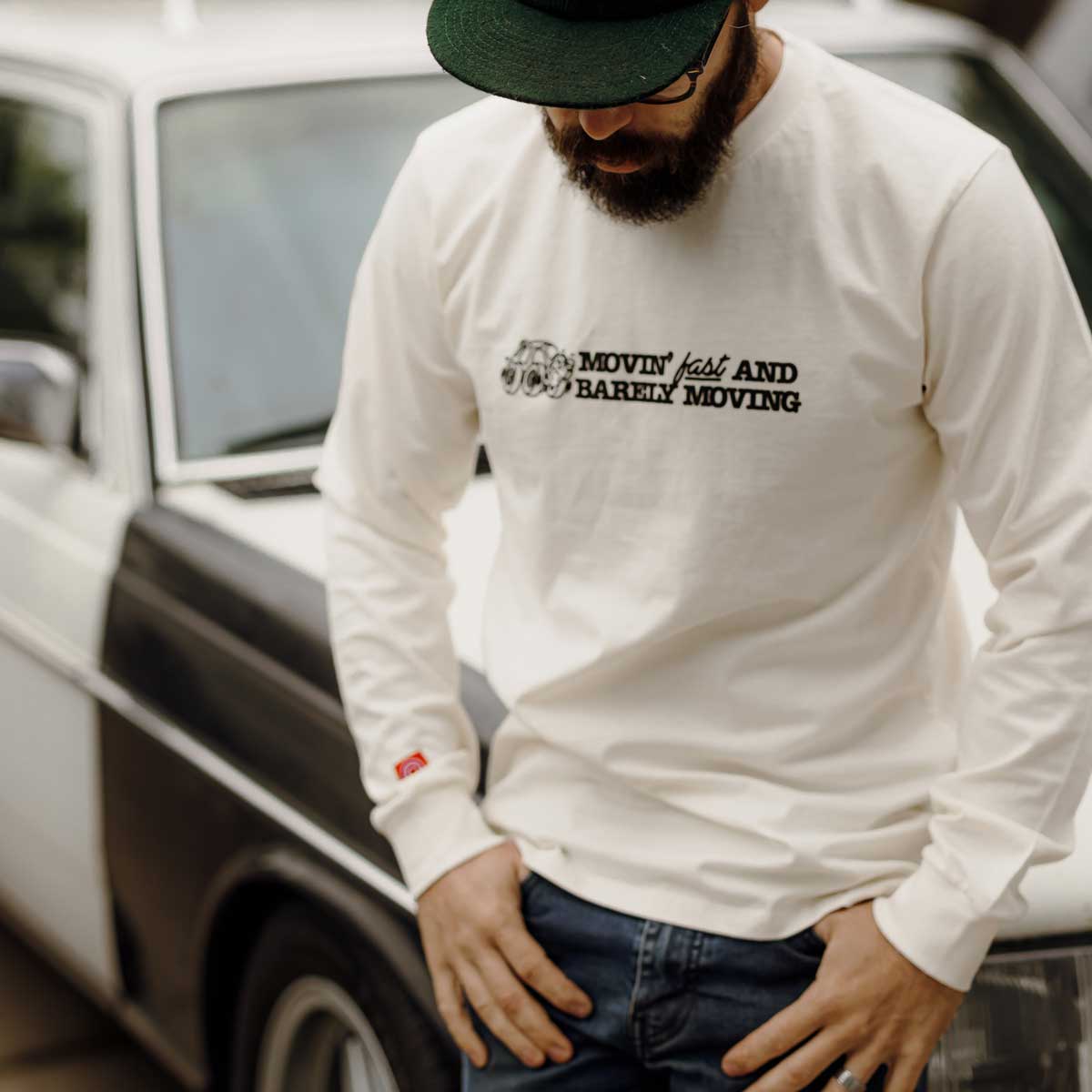 All our shirts are professionally ink screen printed on the highest quality of material. We pride ourselves on delivering a shirt that will age well whether you wear it in the garage, or on out a rally. This long sleeve tee is heavyweight with a relaxed fit.