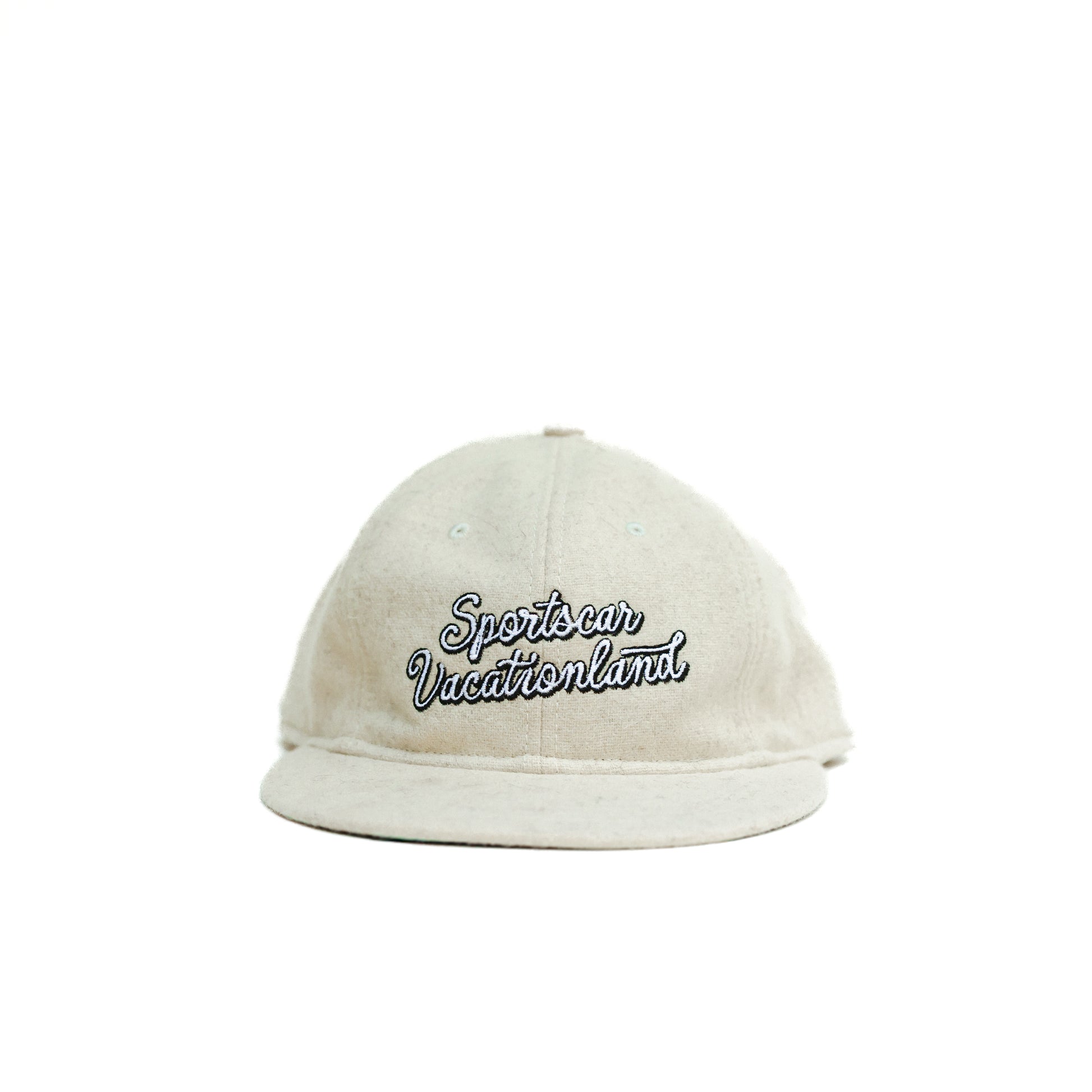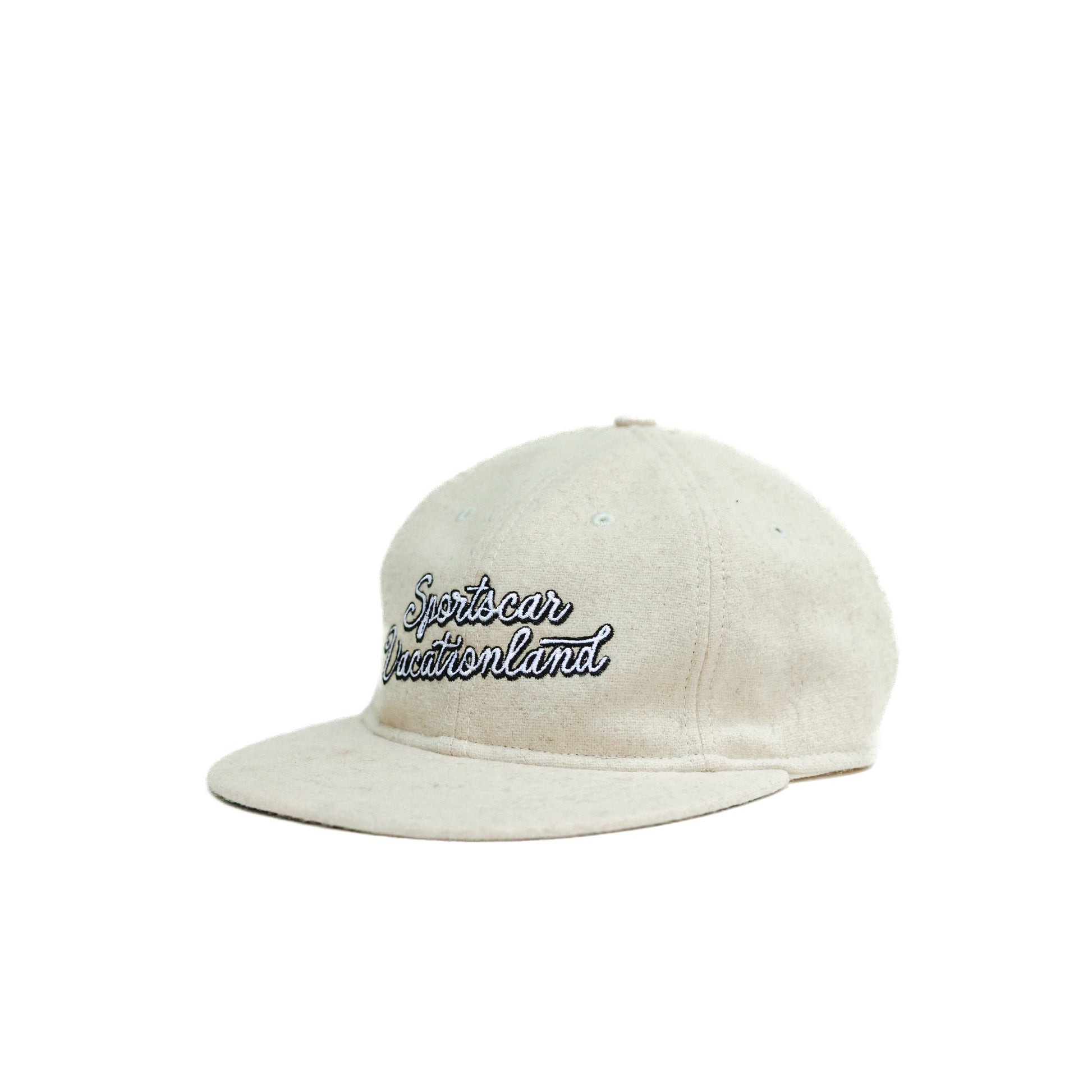 Cream-colored wool, soft yet durable, built for the long road. The Sportscar Vacationland Hat carries the feel of vintage motoring—easygoing drives, winding back-roads, and a horizon that never seems to end.
